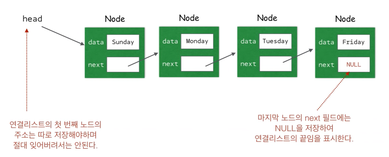 Node *head = NULL; // 연결리스트의 첫번째 노드의 주소를 저장할 포인터
