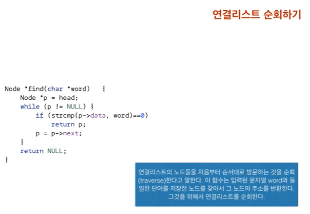 연결리스트에서 노드의 추가와 삭제에대해 알아보았으니 이제 연결리스트를 순회하는 방법에대해 생각해 봅시다.