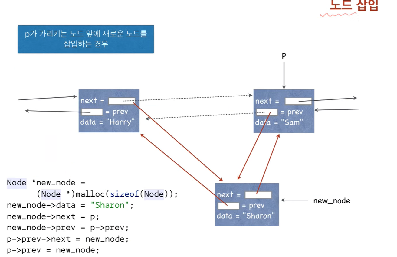 - 어떤 노드의 앞에 새로운 노드를 삽입하기 어려움