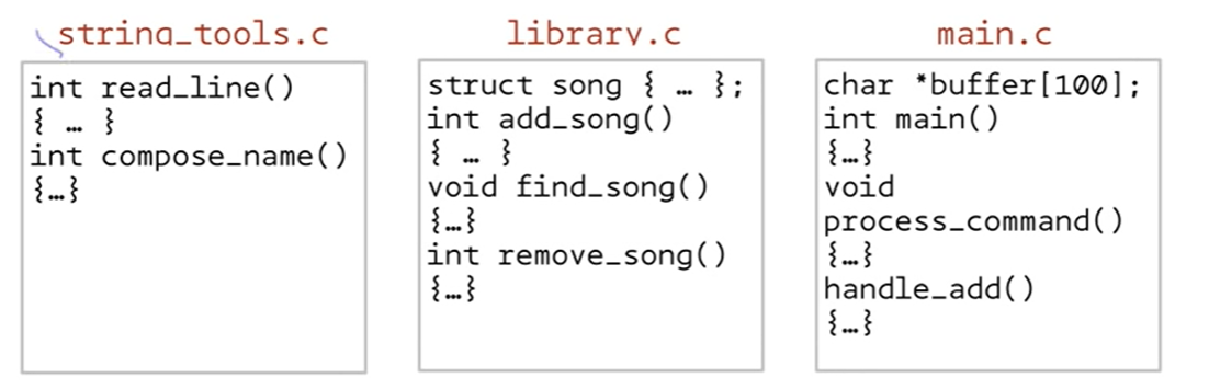 < 서로 연관된 함수들과 변수들을 하나의 파일에 넣는다 >