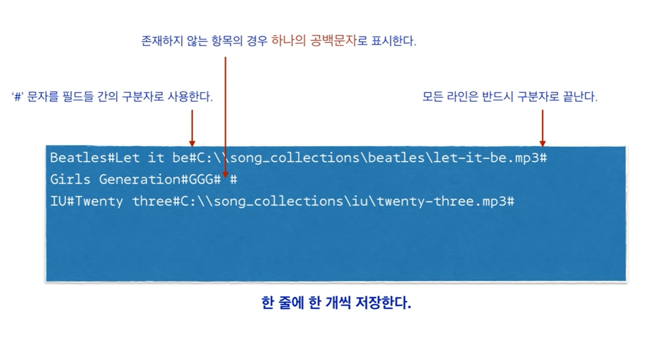 다음은 저장된 음악 프로그램 목록입니다. 아티스트와 음악 저장경로를 구분하기위해 #을 사용하였습니다.