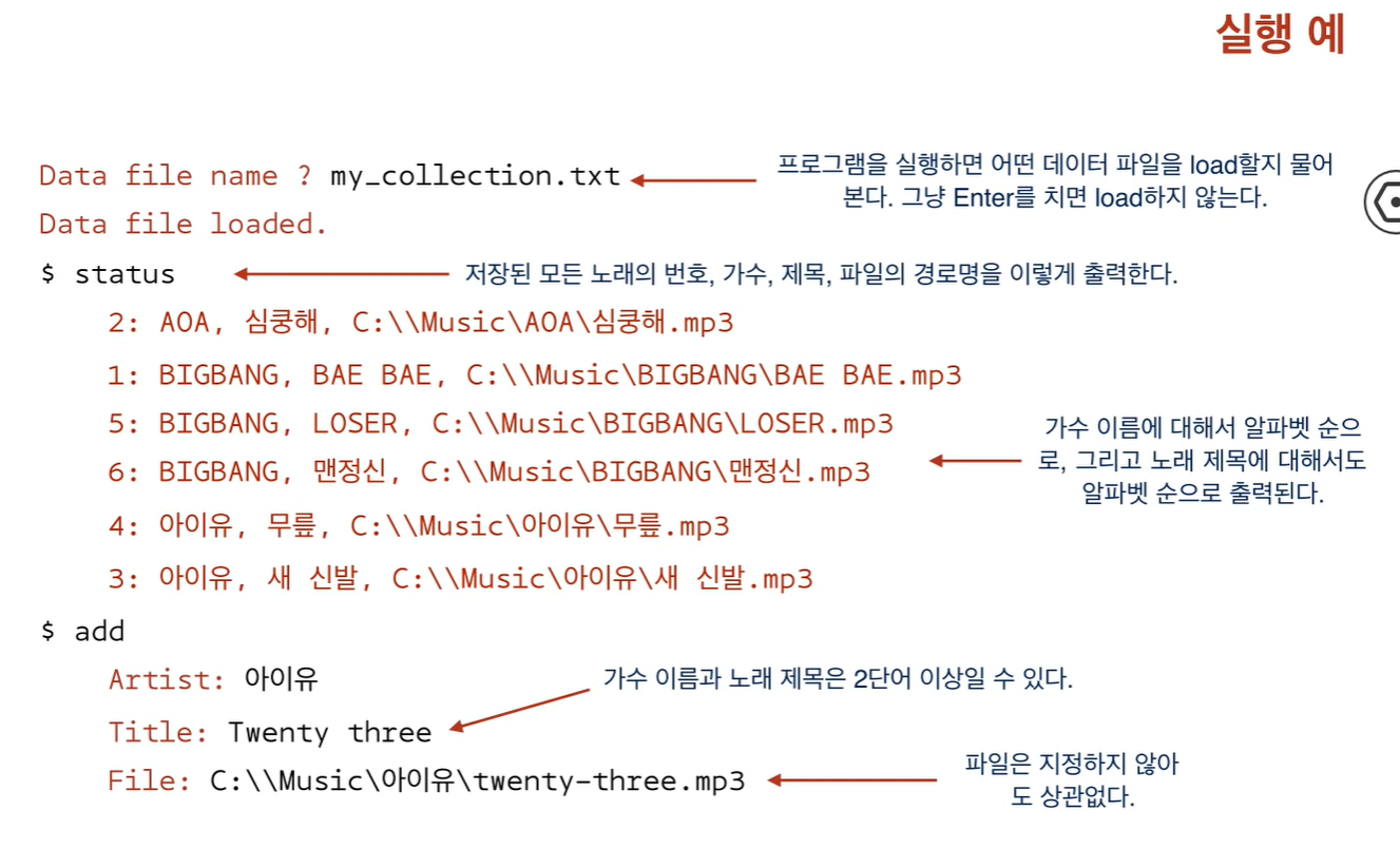 다음은 Music Library Program의 실행예입니다.