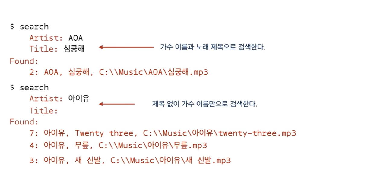 다음은 Music Library Program의 실행예입니다.