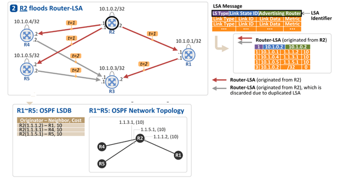 R2가 자신의 링크 정보를 다른 OSPF 라우터들로 전파