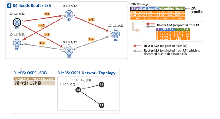 R4가 자신의 링크 정보를 다른 OSPF 라우터들로 전파