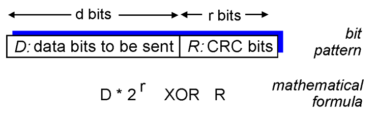 d비트로 이루어진 데이터 D를 송신 노드가 수신노드로 전송하고자 한다고 가정하자. 먼저 송신자와 수신자는 G로 표기되는 생성자로 알려진 r+1 비트 패턴에 대해서 합의한다. G의 최상위 비트는 1이여야 한다.