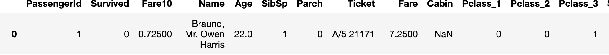 3 Fare10 891 non-null float64