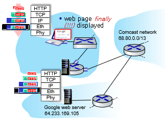 - 시나리오 : 학생이 학교 네트워크에 노트북을 연결하고 www.google.com웹페이지 지 요청하고 응답 받는것.