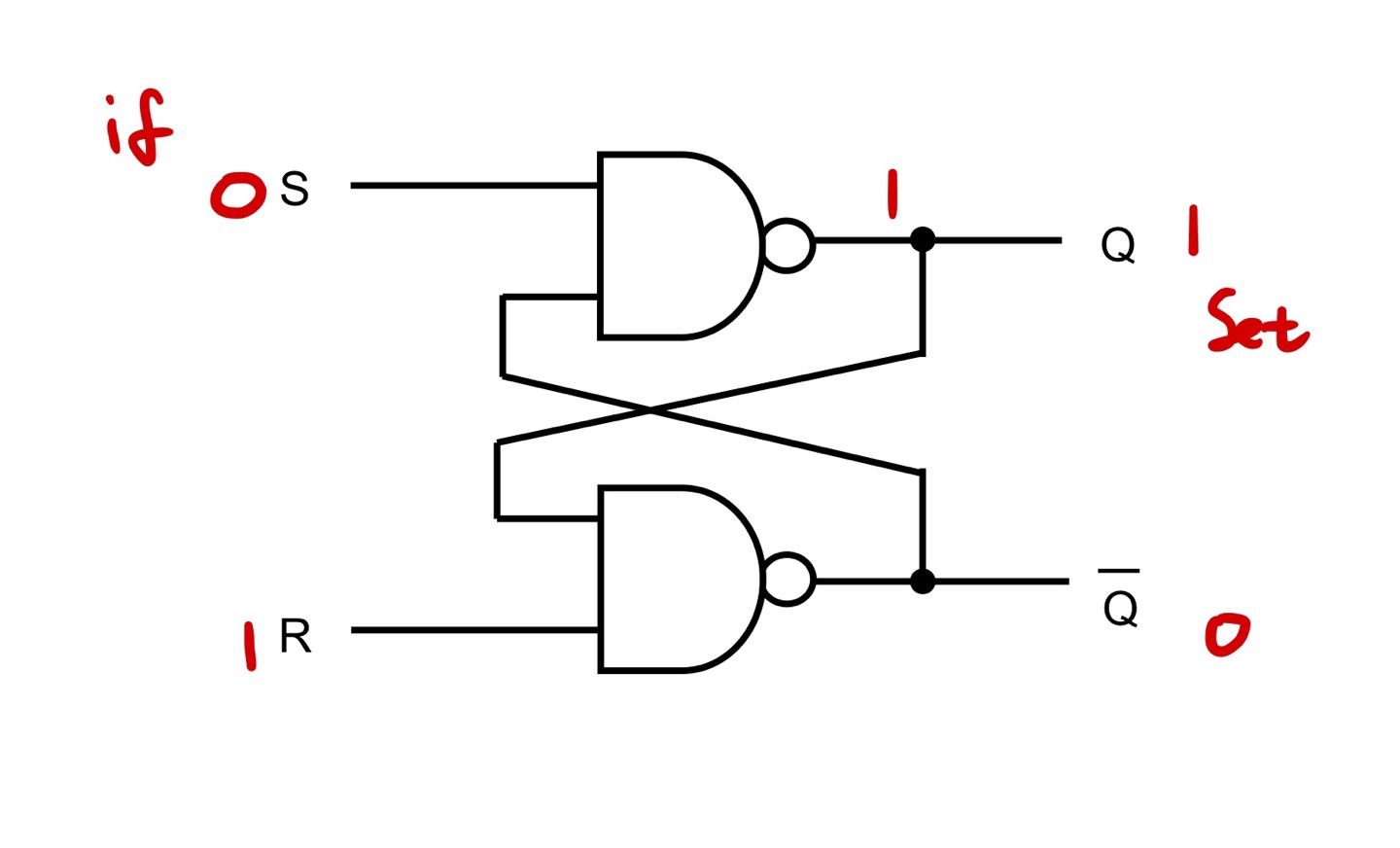 - Set : S신호가 0일 때 Q값은 1