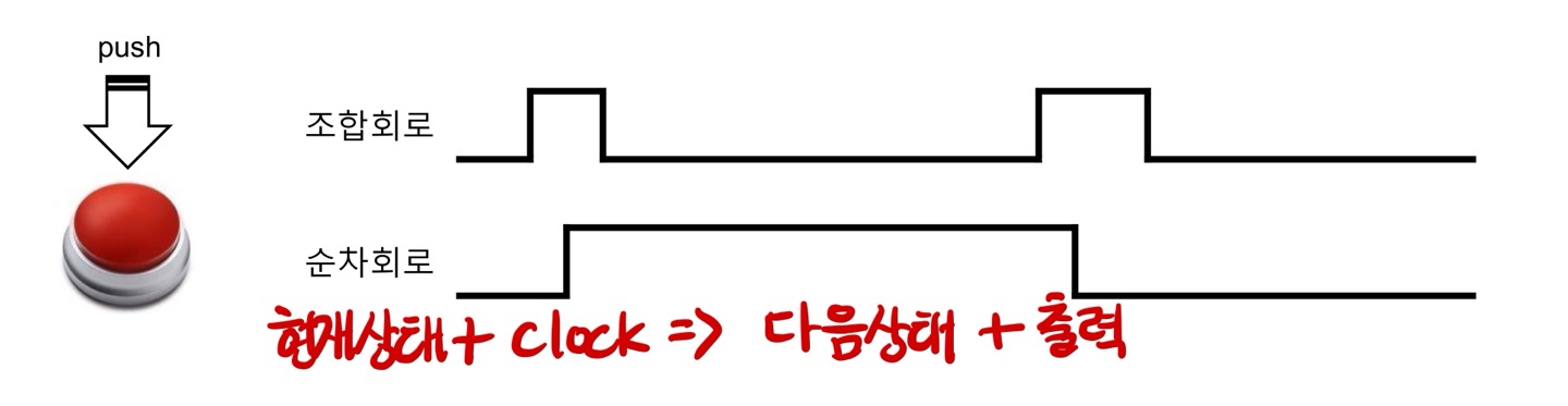 - 값을 저장하는 래치,플립플롭,레지스터(플립플롭의 모임),메모리 등의 소자가 있어 현재상태를 저장