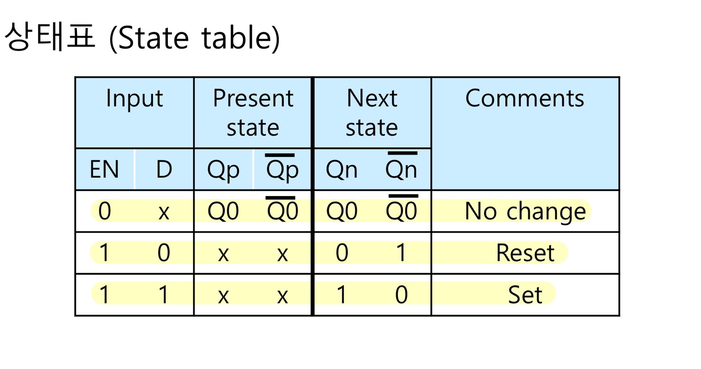 - SR Latch에 EN신호를 추가한 Latch