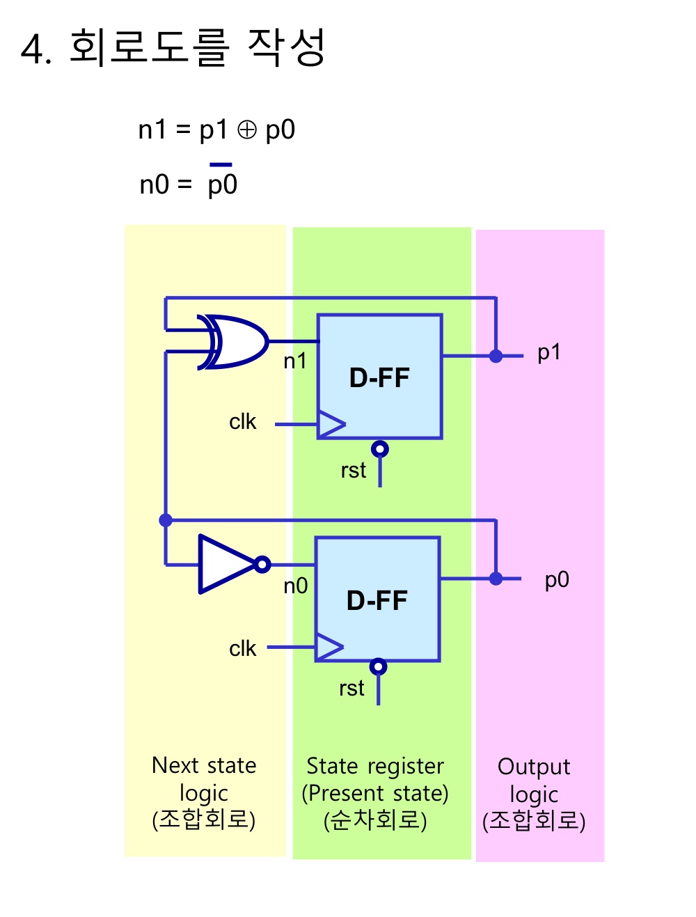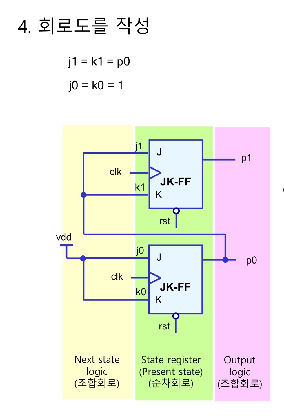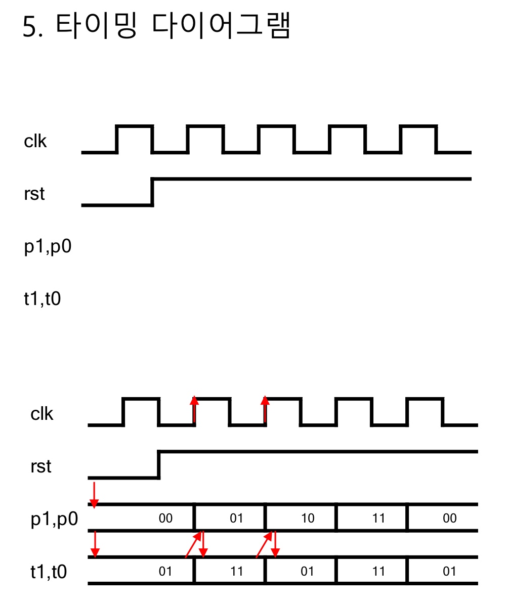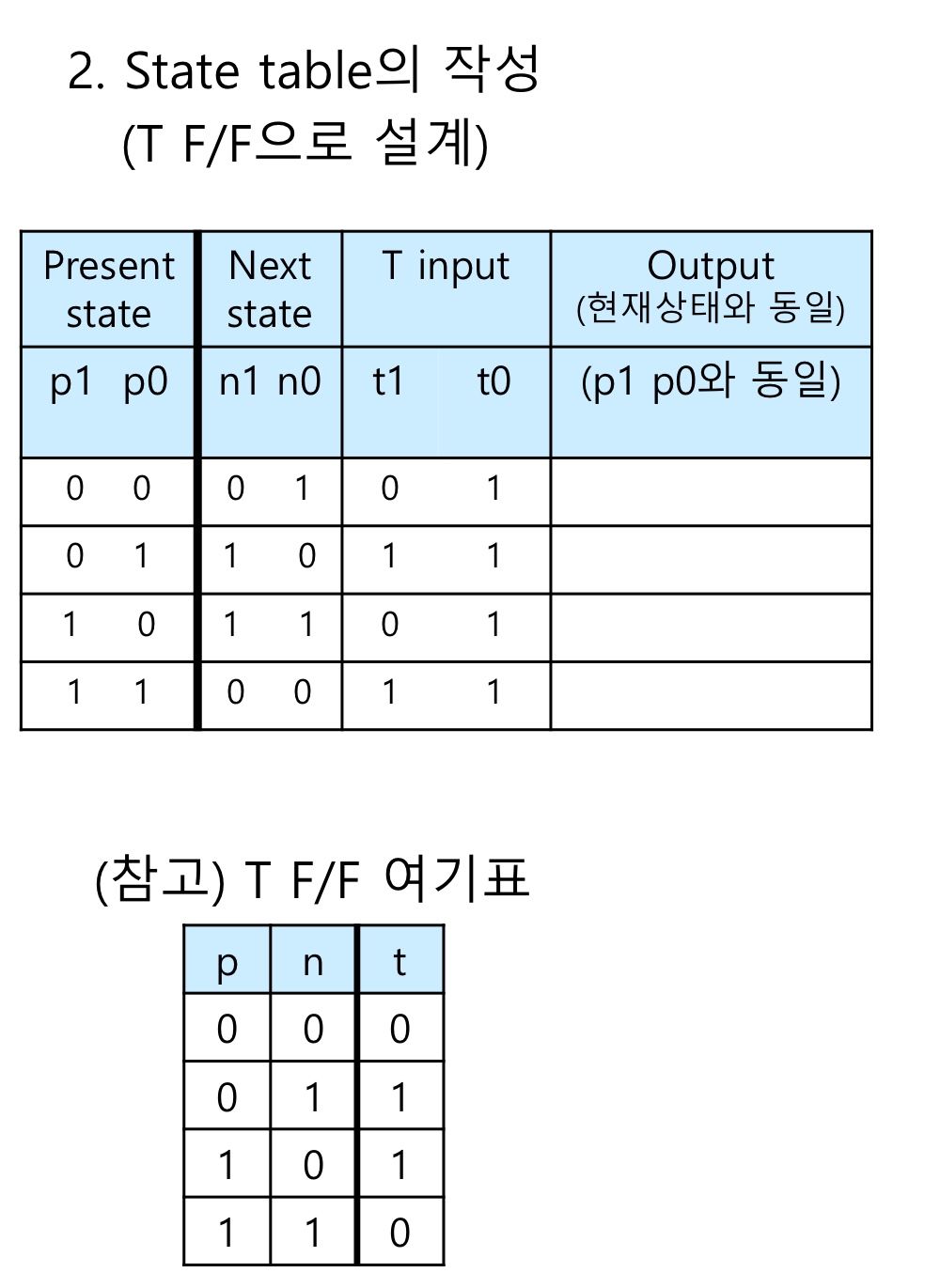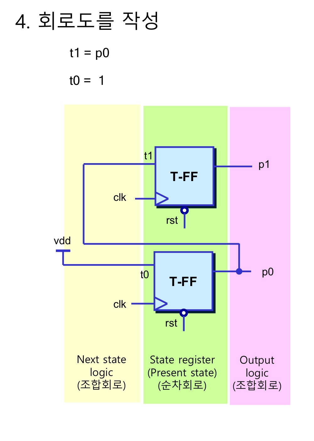 - 00 > 01 > 10 > 11 > 00 > 01과 같이 값을 세는 카운터의 설계