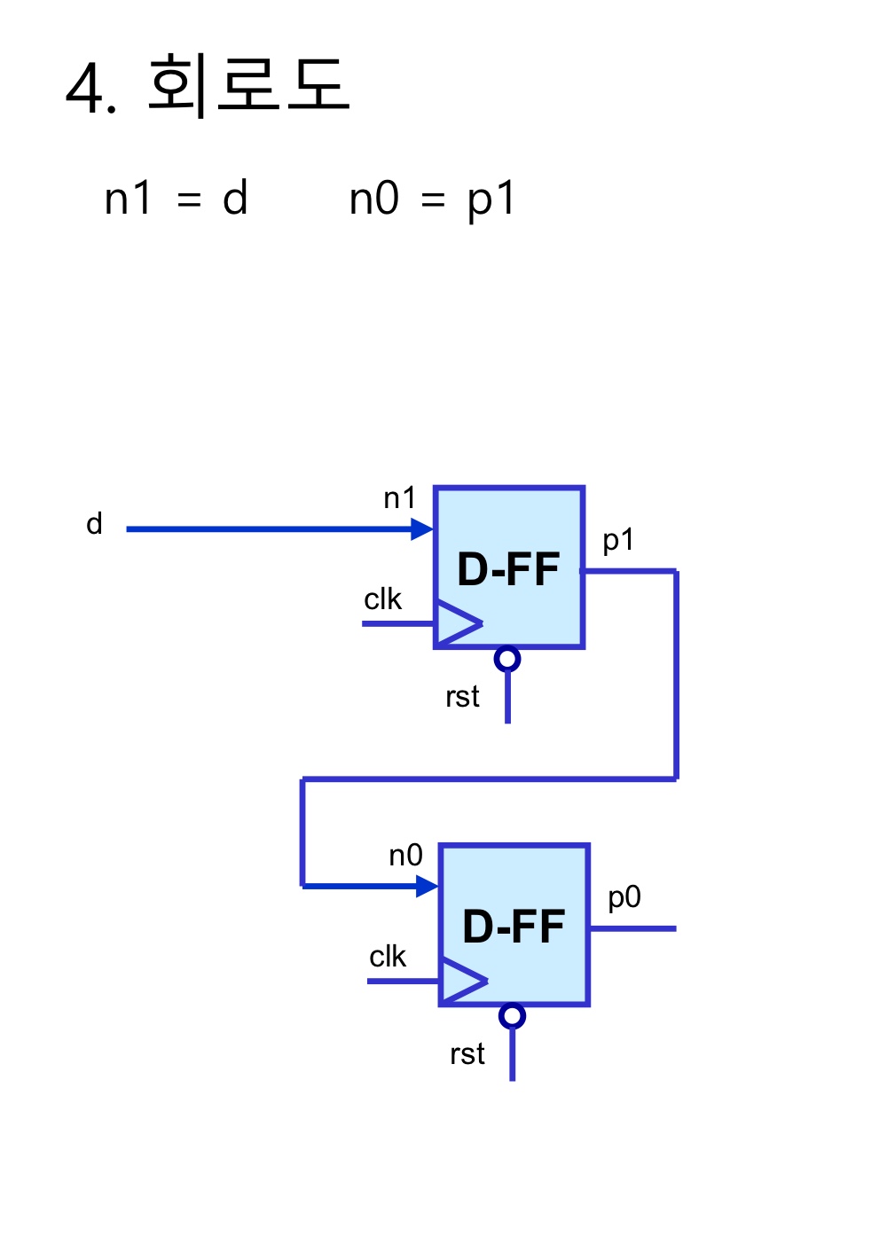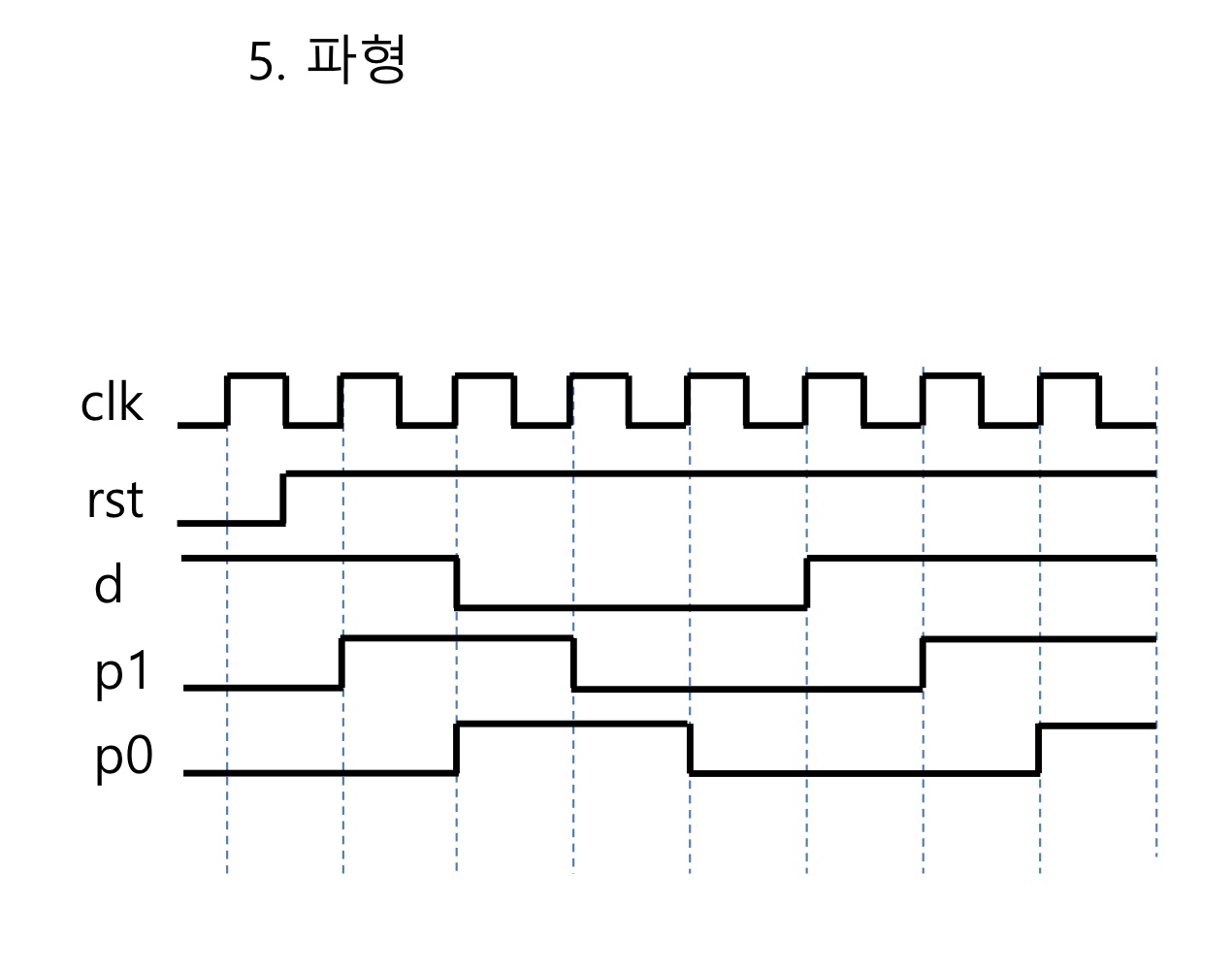 - 매 클럭마다 입력 d가 입력될 때마다 오른쪽으로 시프트