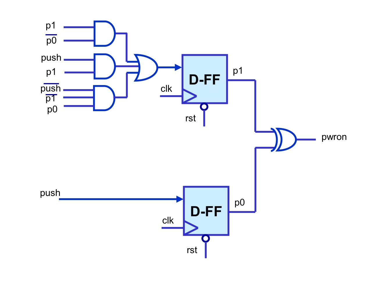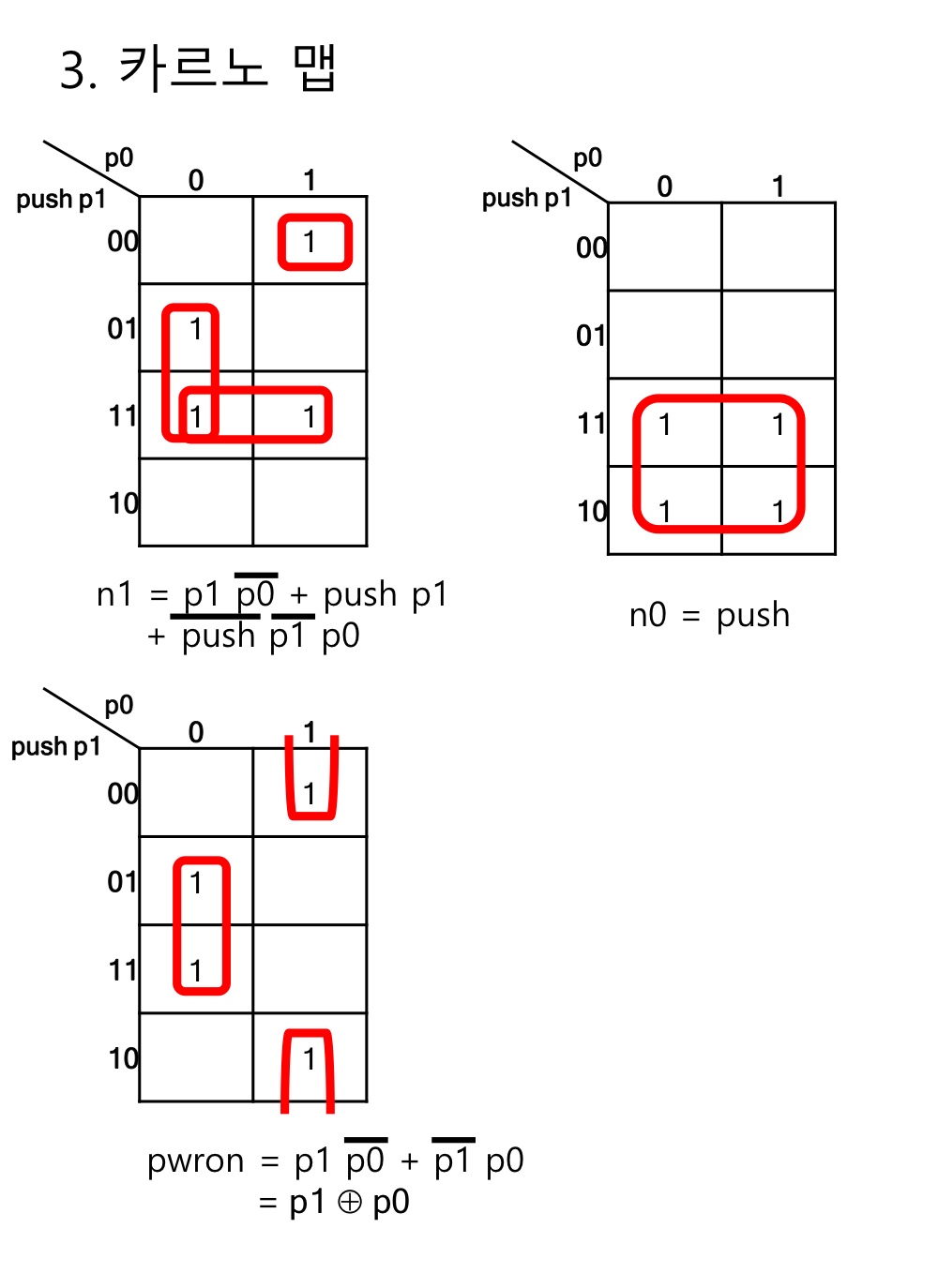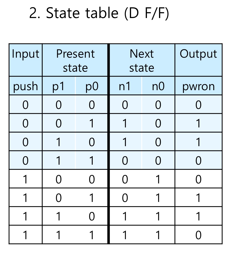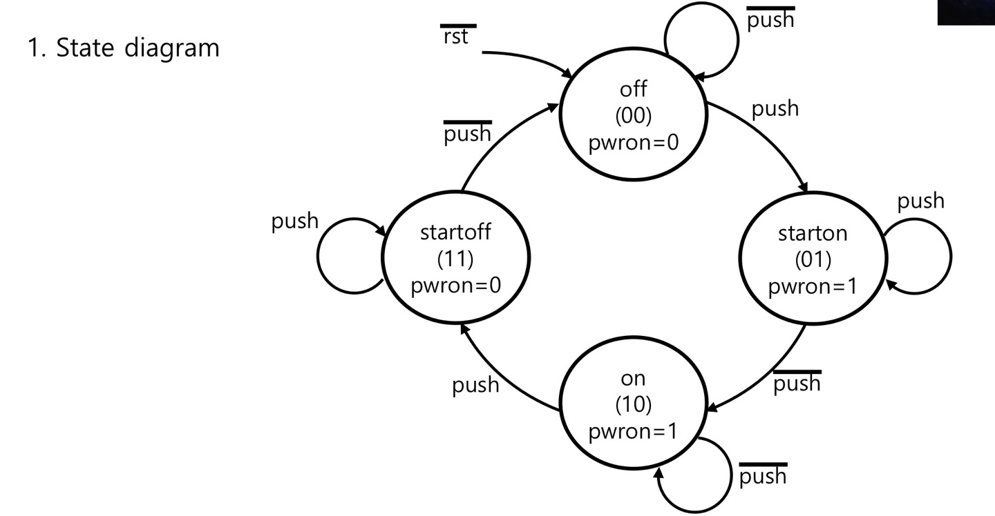 - 입력 : push : 전원 스위치가 눌려 있는 경우 1