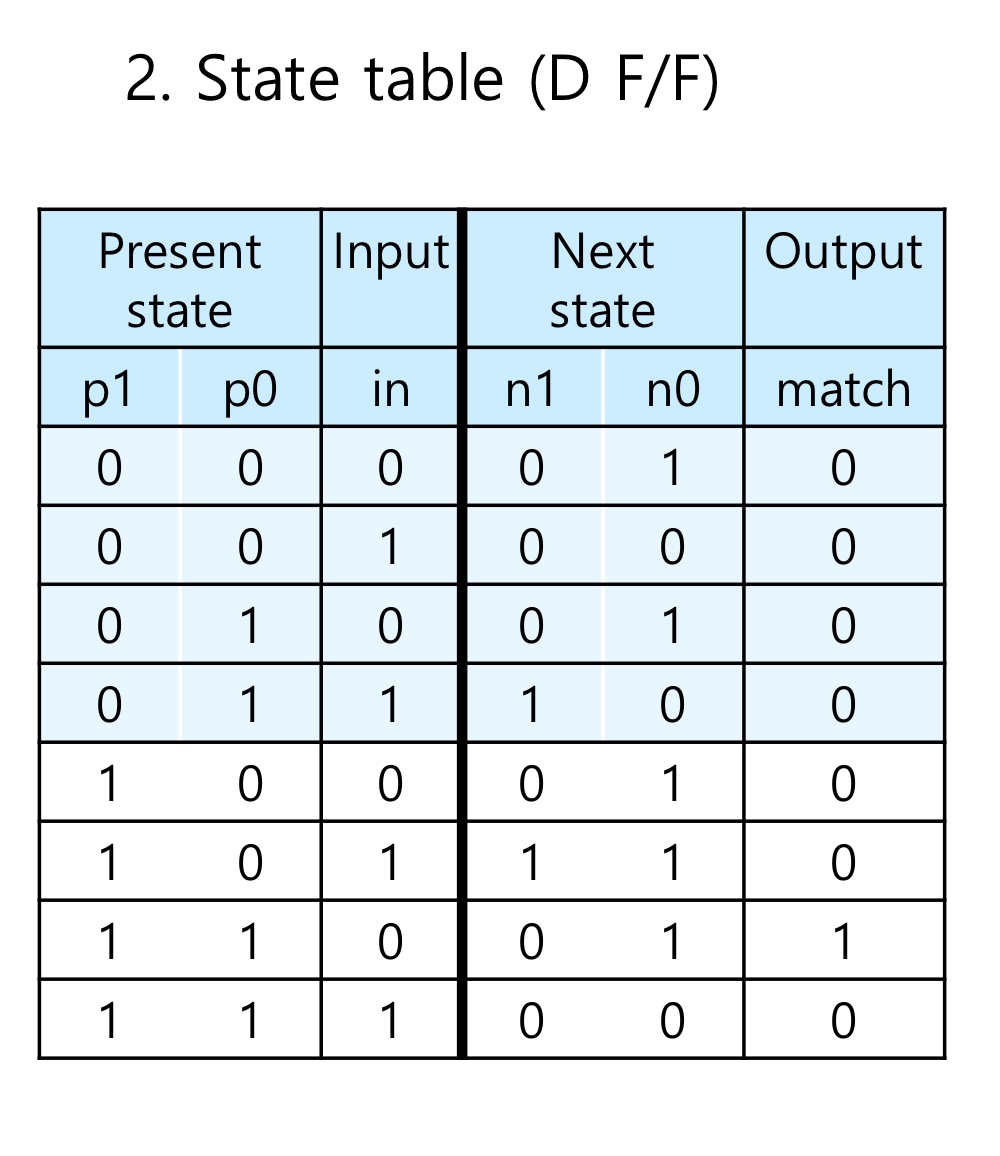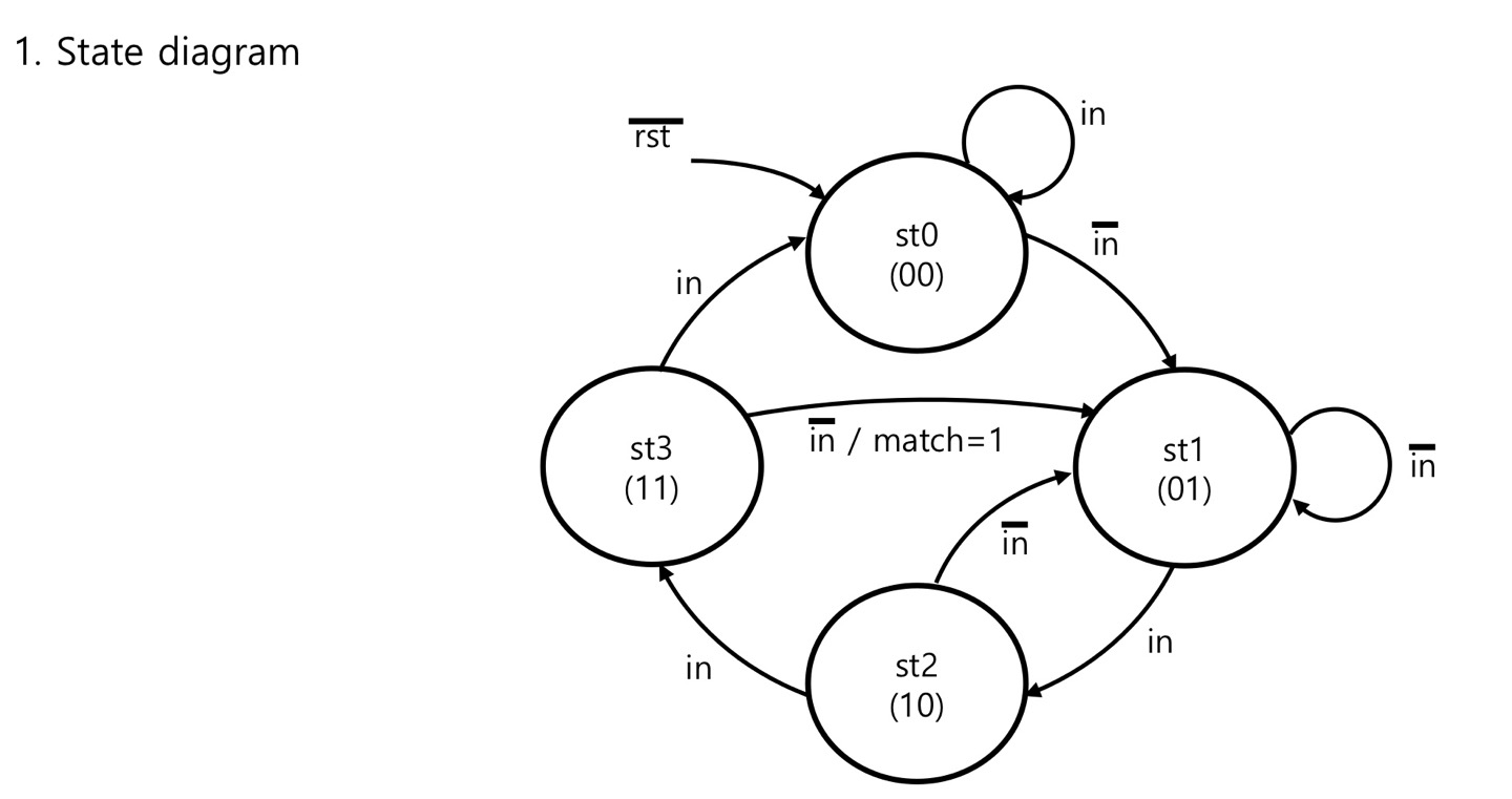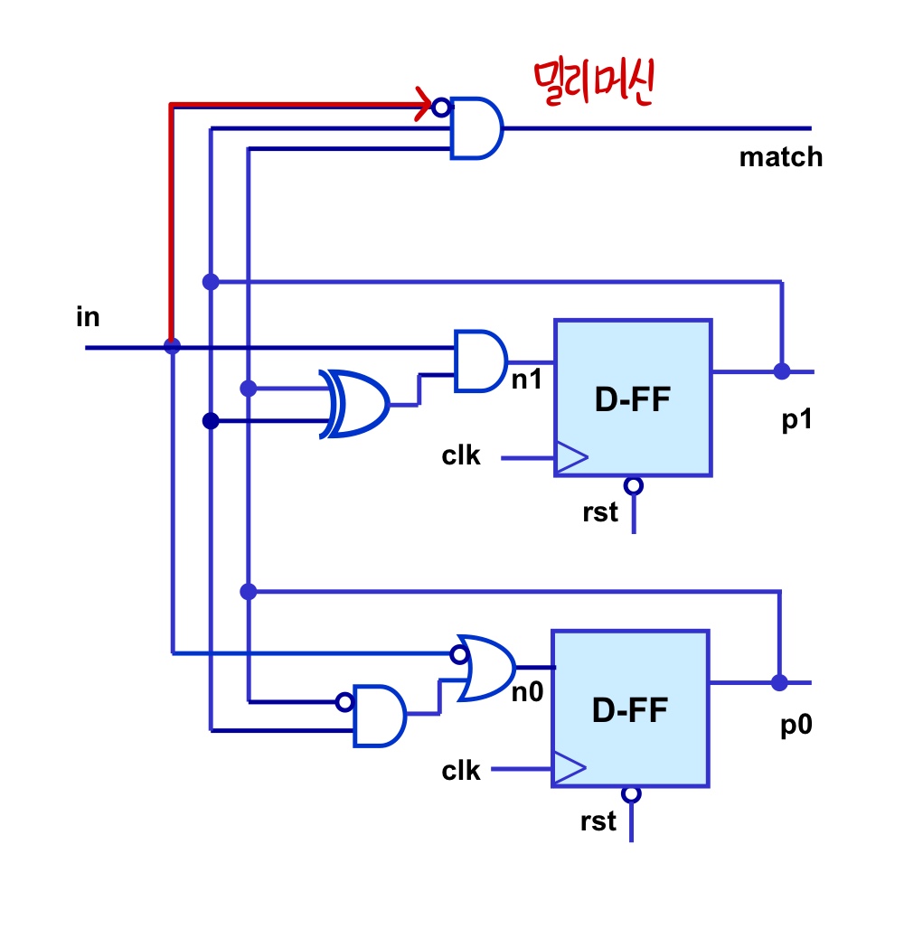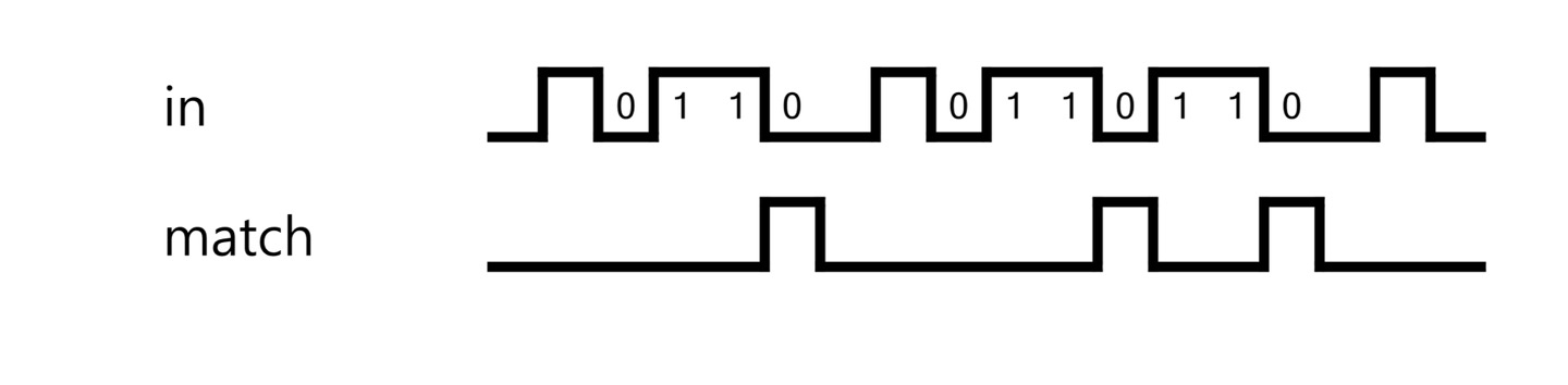 - 일련의 숫자가 0110이 될때마다 출력 match신호는 1이 된다.