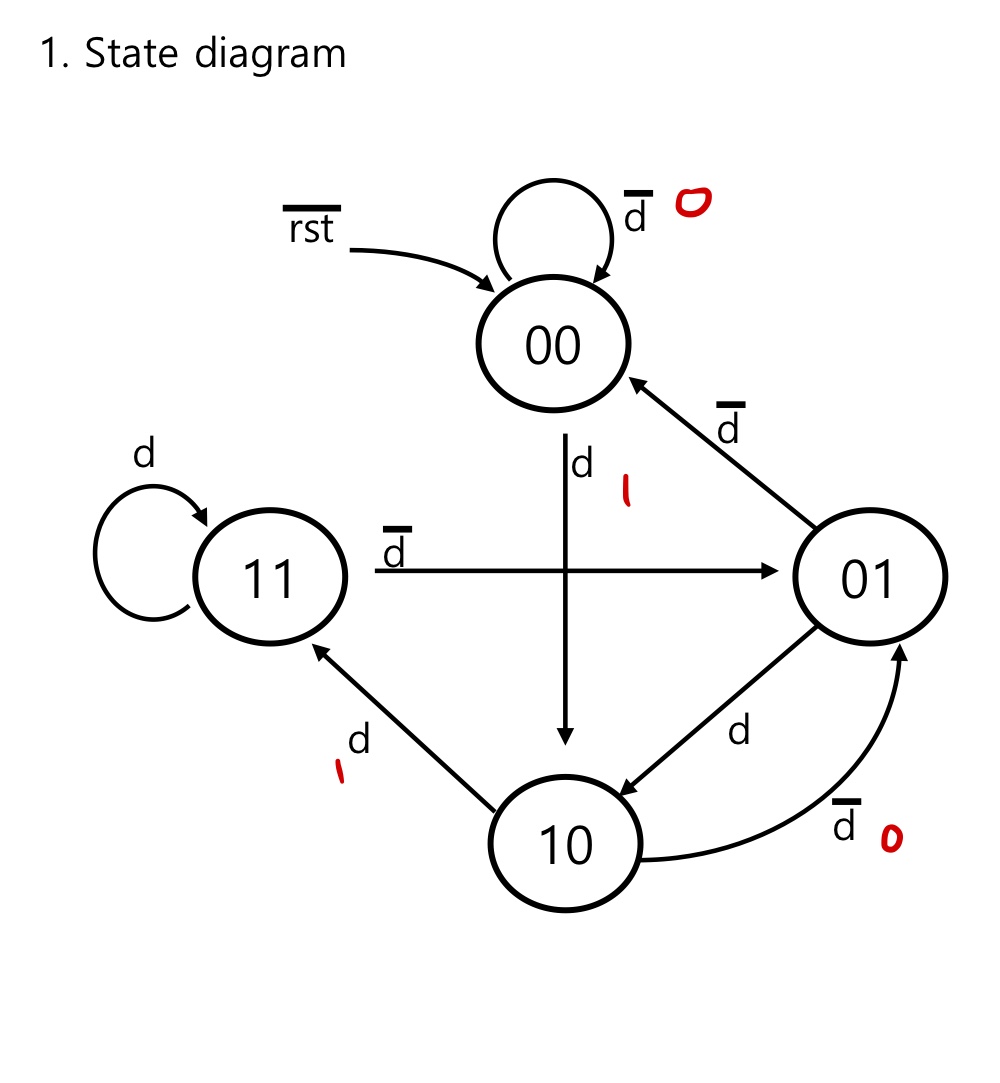 - 00>01>10>11로 변하는 카운터가 11이 되었을 때만 last=1