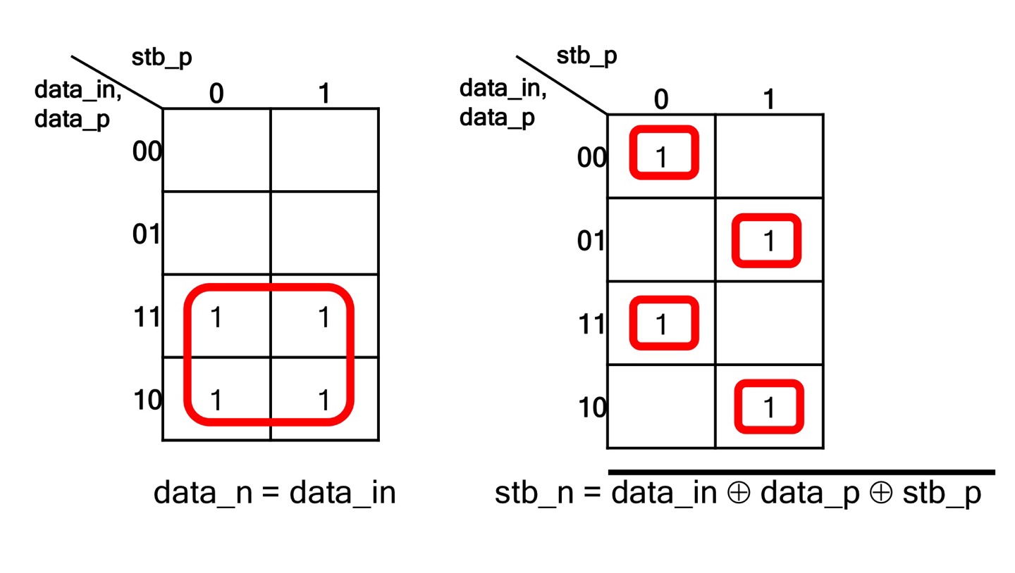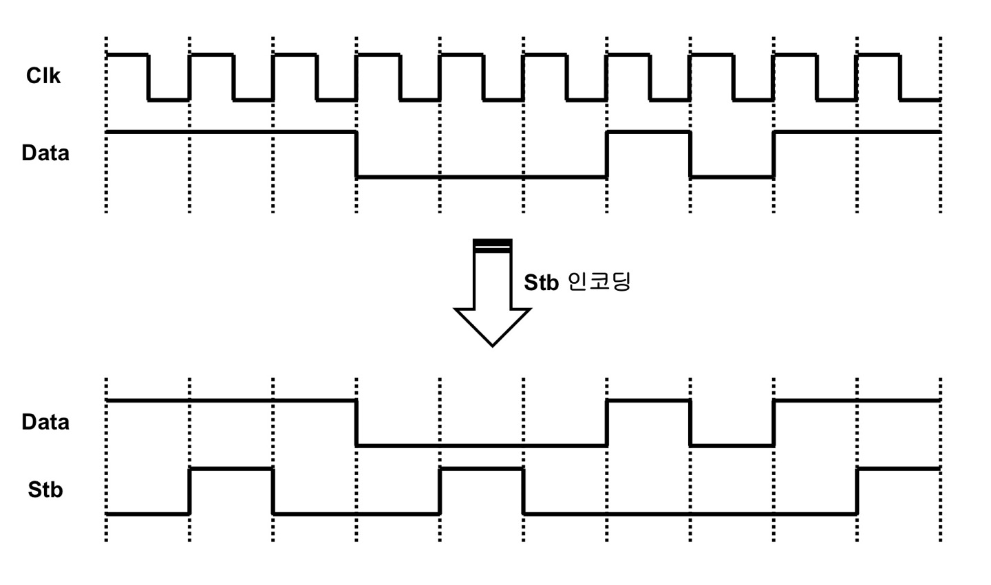- 신호의 스위칭에 의한 전력 소모를 줄이기 위하여 클럭 신호를 Stb로 인코딩하여 송신한다.