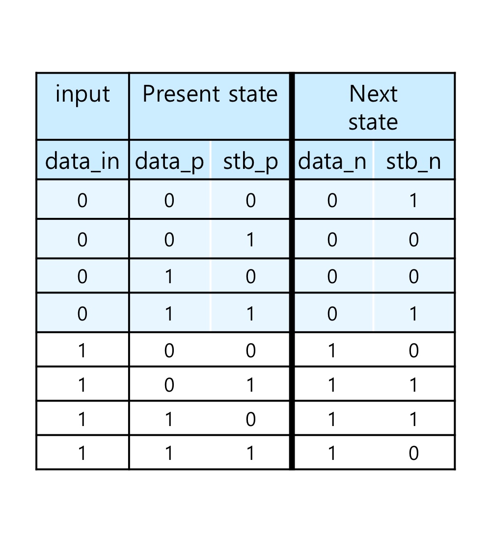 - 현재상태의 data와 입력되는 data가 다르지 않으면 stb_n은 토글한다.