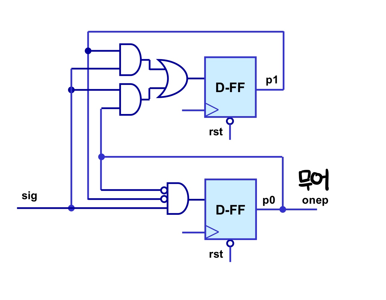 - active 상태 : 1을 출력하는 상태, onep=1