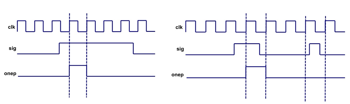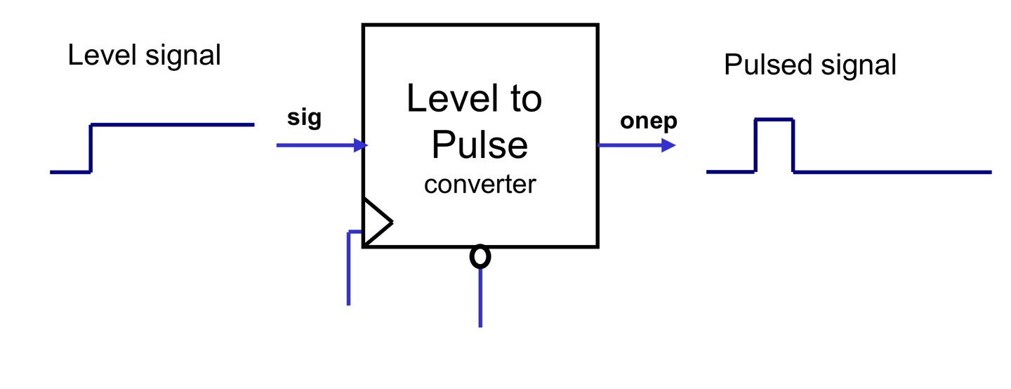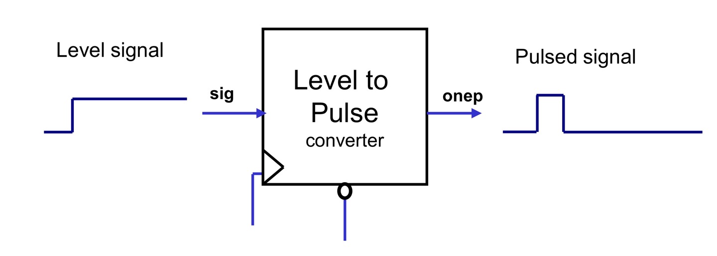 - Level to pulse converter : 여러 클럭 사이클 동안 1또는0이 입력되므로 신호를 한 클럭 동안에만 1이나 0이 되는것이 필요한 경우에 사용한다.