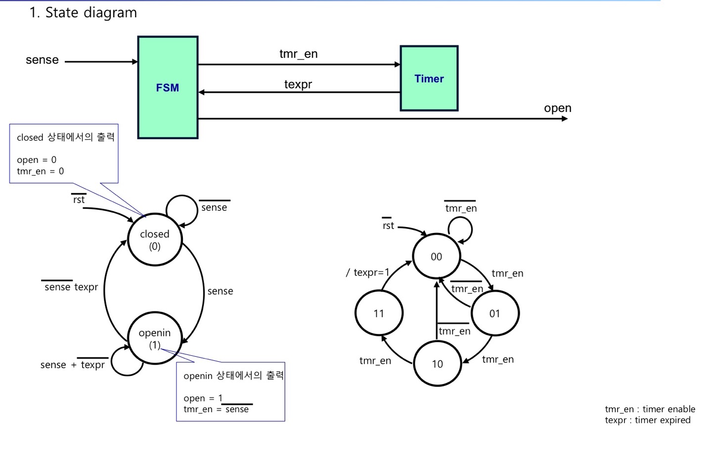 - open : 1일 경우 문을 열고 0일 경우 닫도록 하는 출력 신호