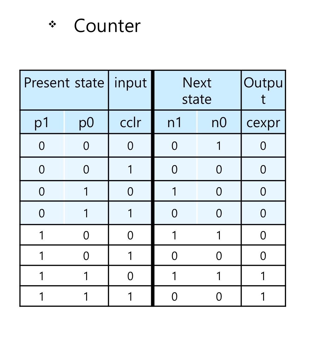 - Counter는 논리 간략화 제한때문에 2비트로 설계