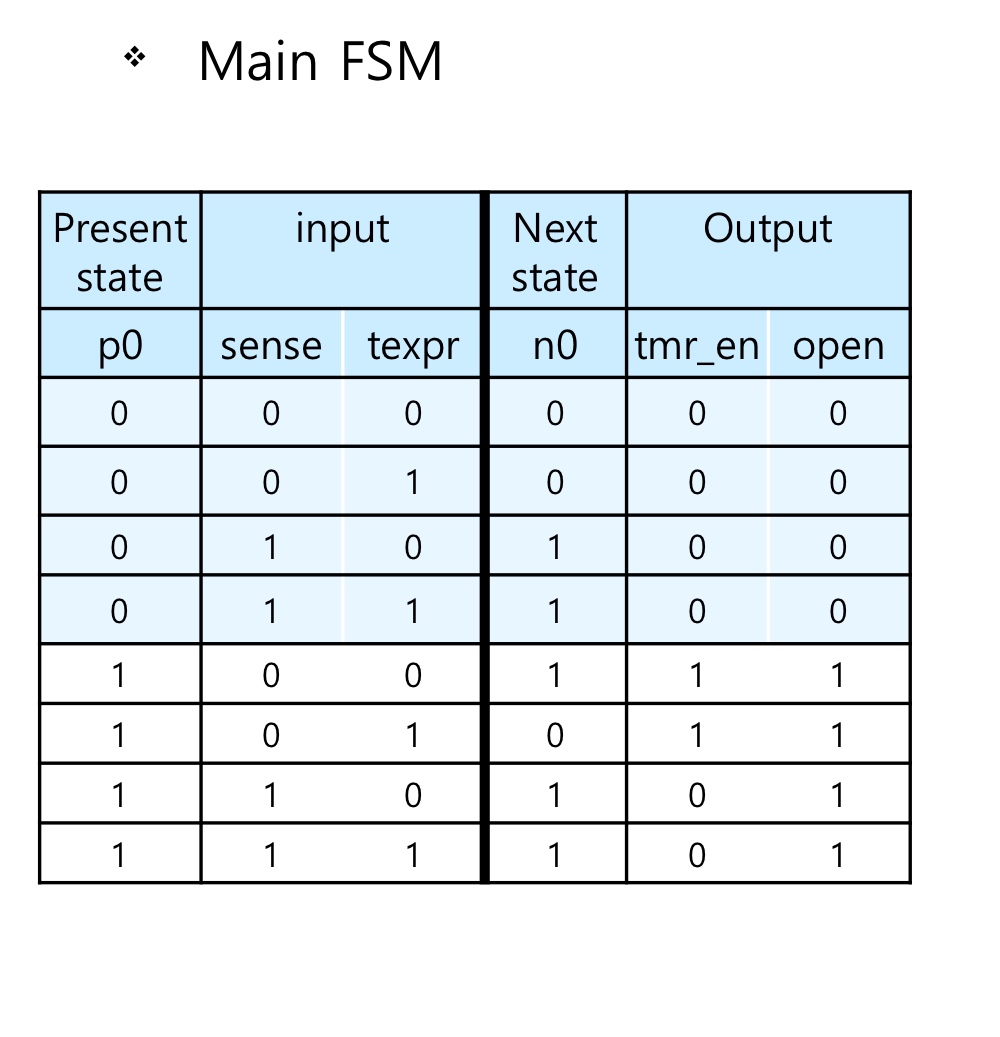 - 안전상 시간의 여유를 두기 위해 sense=0이 되더라도 4초 후에 닫는다.