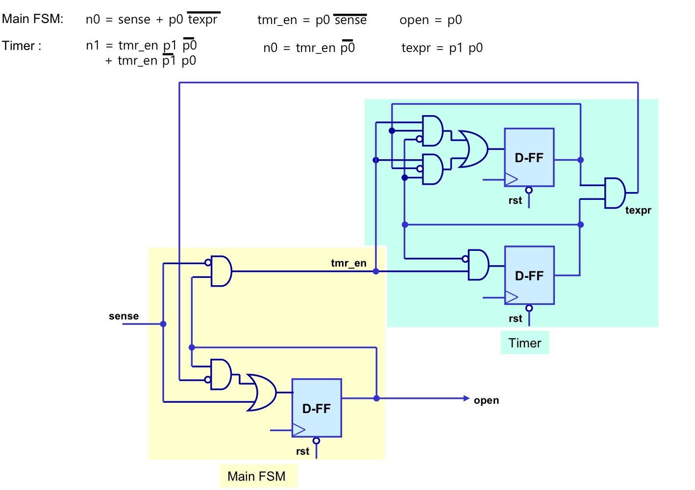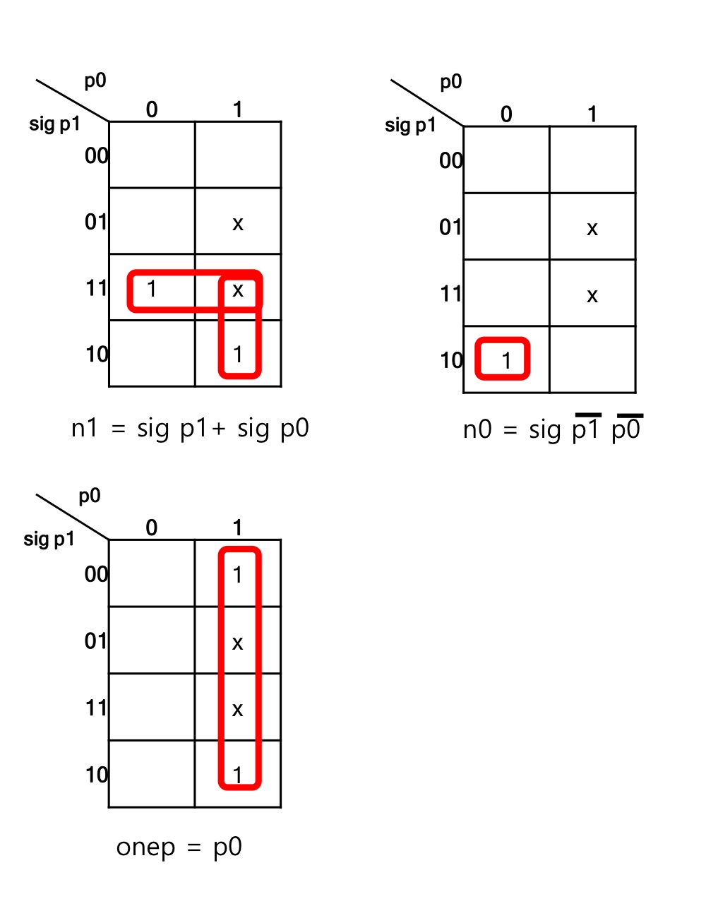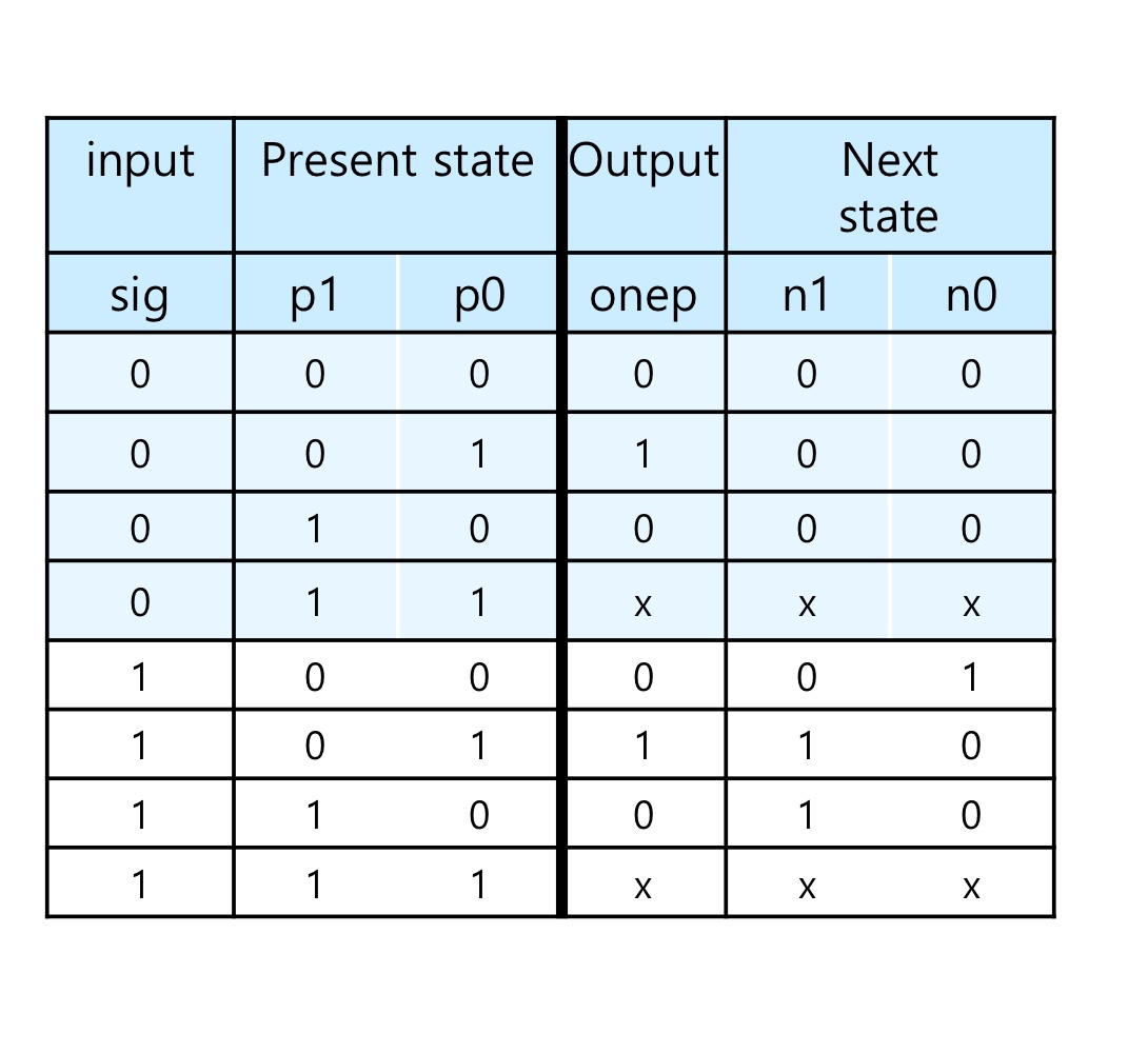 - 출력 onep는 현재상태에만 의존하므로 무어 머신이다.