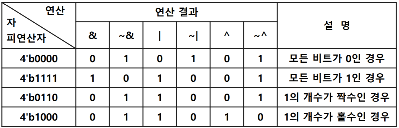 - 피연산자의 단위 비트들에 적용되어 단일 비트의 결과값을 생성