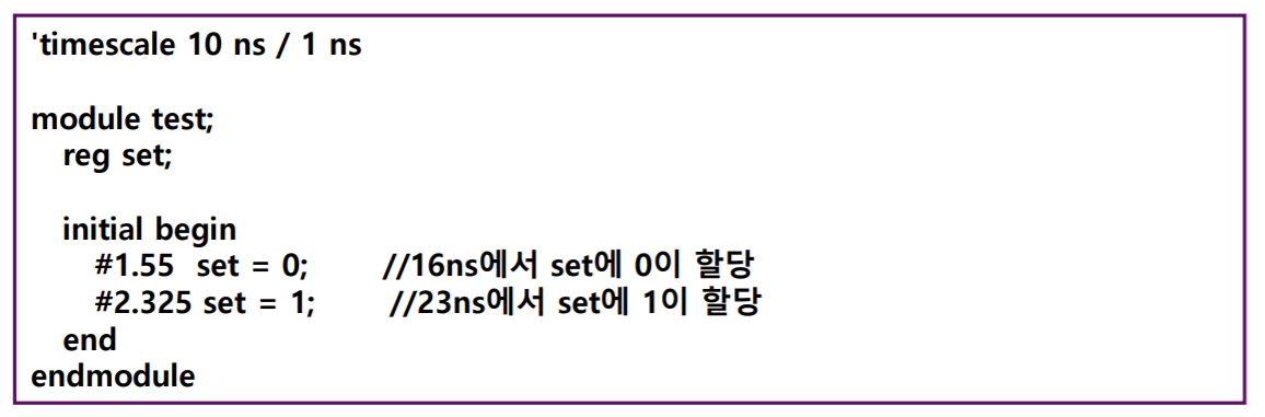 - 합성이 필요하지 않은 블록으로 간으한 모든 Verilog 문장을 사용할 수 있습니다.