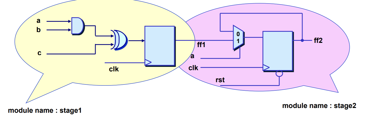 왼쪽과 오른쪽 모듈을 각각 따로 생각하여 HDL을 작성할 수 있습니다.
