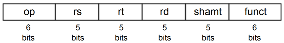- 표시하기 쉽게 MIPS명령어의 각 필드에는 다음과 같은 이름이 붙어 있습니다.