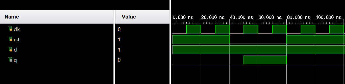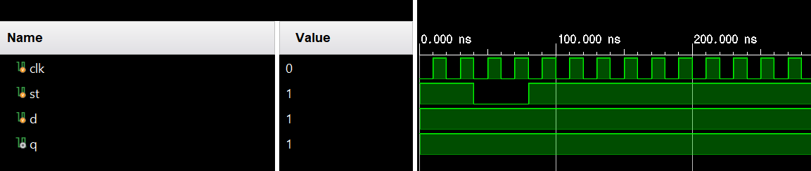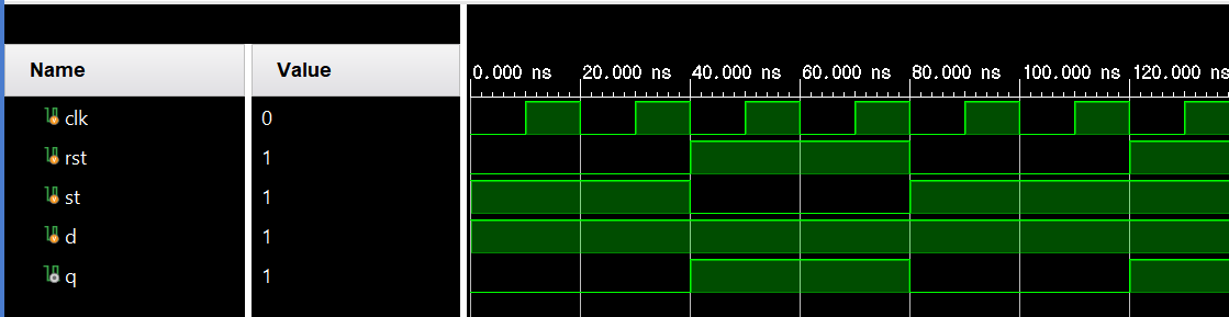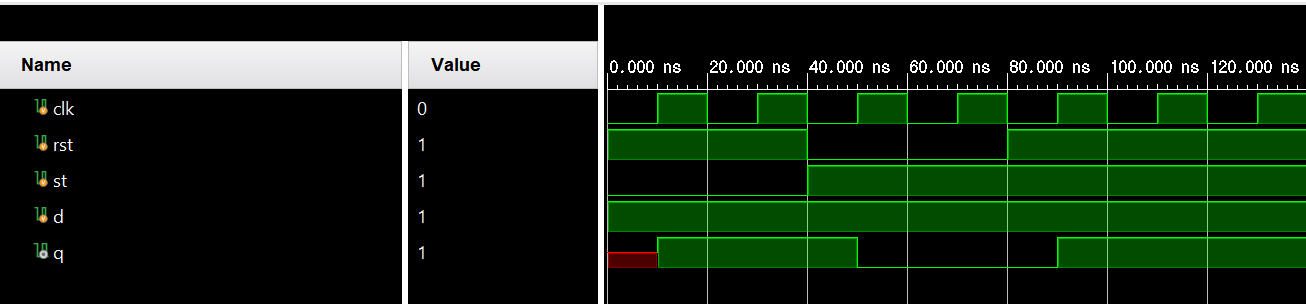 ★ 다음의 D플립플롭을 Verilog HDL로 모델링하고, 시뮬레이션을 통해 동작을 확인한다.