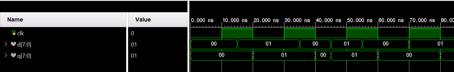 ★ Negative level-sensitive 방식으로 동작하는 8비트 D래치회로를 설계하고, 테스트벤치를 작성하여 기능을 검증한다.
