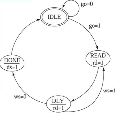 DLY : begin rd = 1'b1; if(!ws) next = DONE; else next = DLY; end