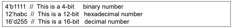 Verilog는 크기 지정 기능과 크기 지정 불가능 형태의 두 가지 수 표현이 있다.