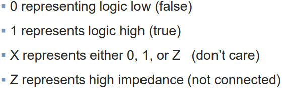 Verilog는 실제 하드웨어의 기능을 모델로 한 4개의 논리값을 지원한다.