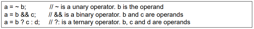 연산자는 단항, 이항, 삼항 세 가지 형이 있다.