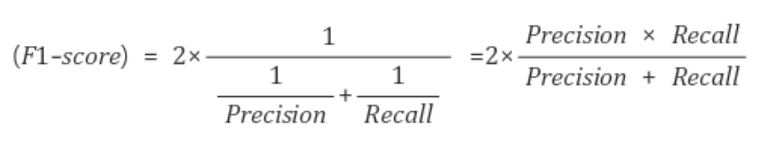 > 정밀도와 재현율을 결합한 지표. 정밀도와 재현율이 어느 한쪽으로 치우치지 않는 수치를 나타낼 때 상대적으로 높은 값을 가진다.