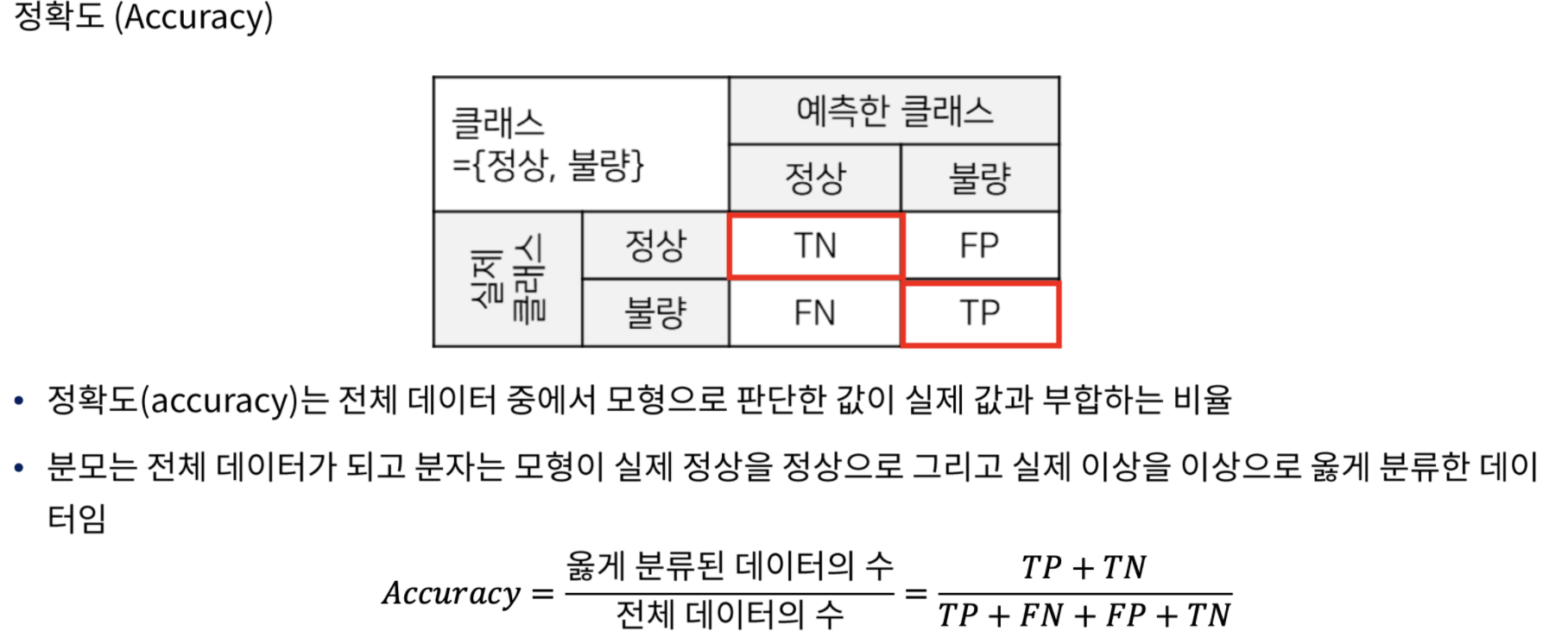 모델의 성능을 판단하는 평가지표 중 하나가 정확도(accuracy)이다.