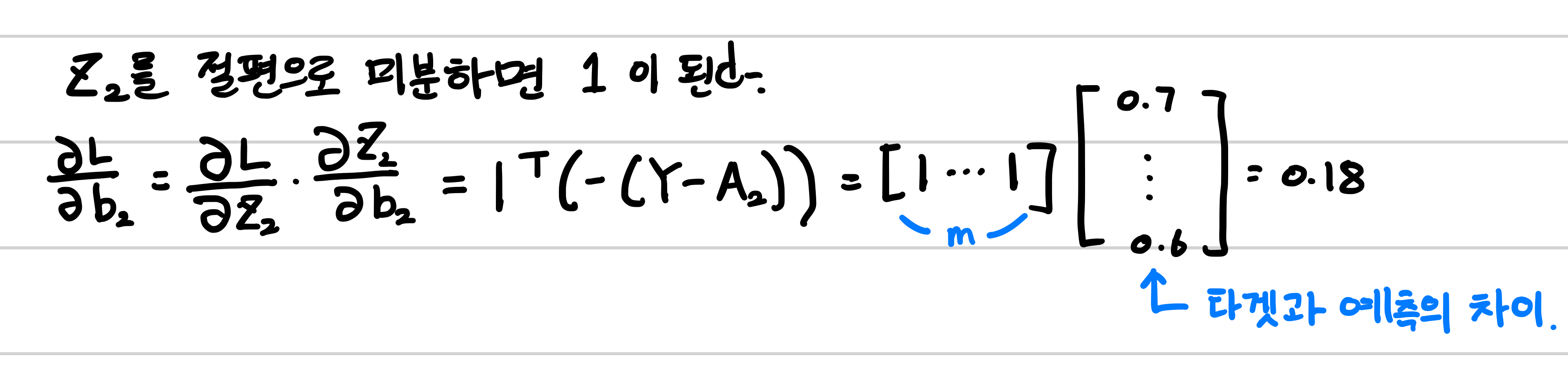 가중치에 대한 손실함수를 미분했으므로 이제 절편에 대한 손실함수 미분을 하겠습니다.