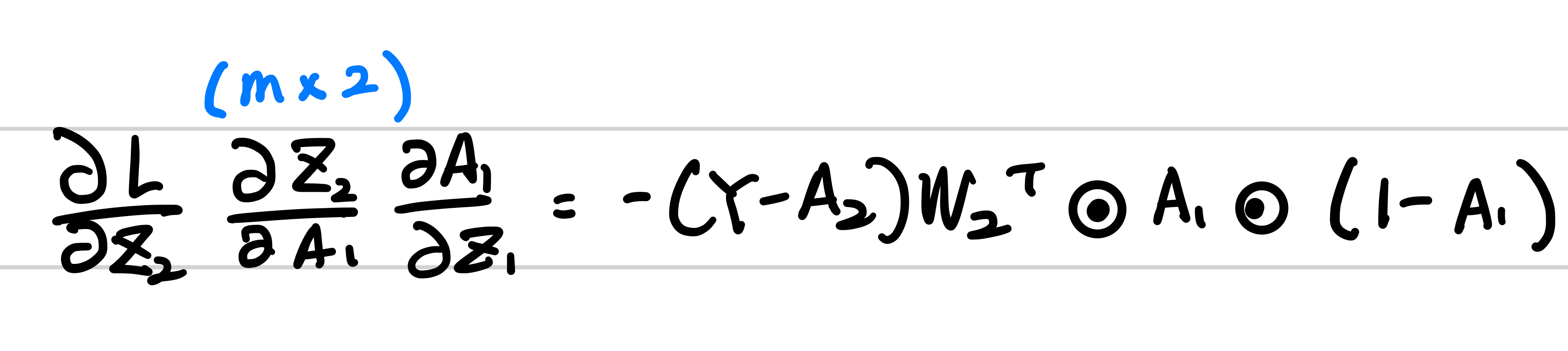 -(Y-A2)의 행렬 크기는 Y가 (m,1) , A2가 (m,1)이므로 크기는 (m,1) 입니다.