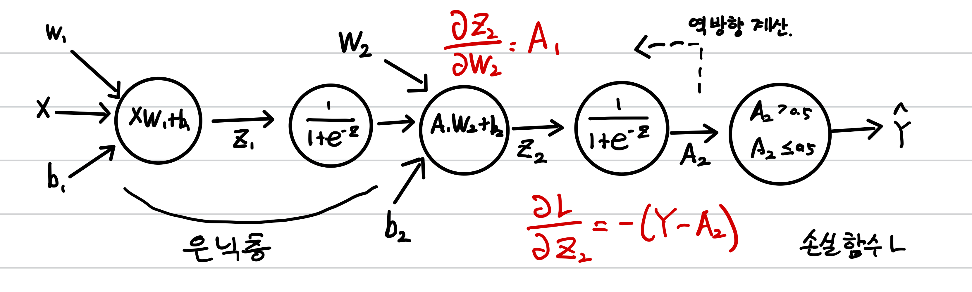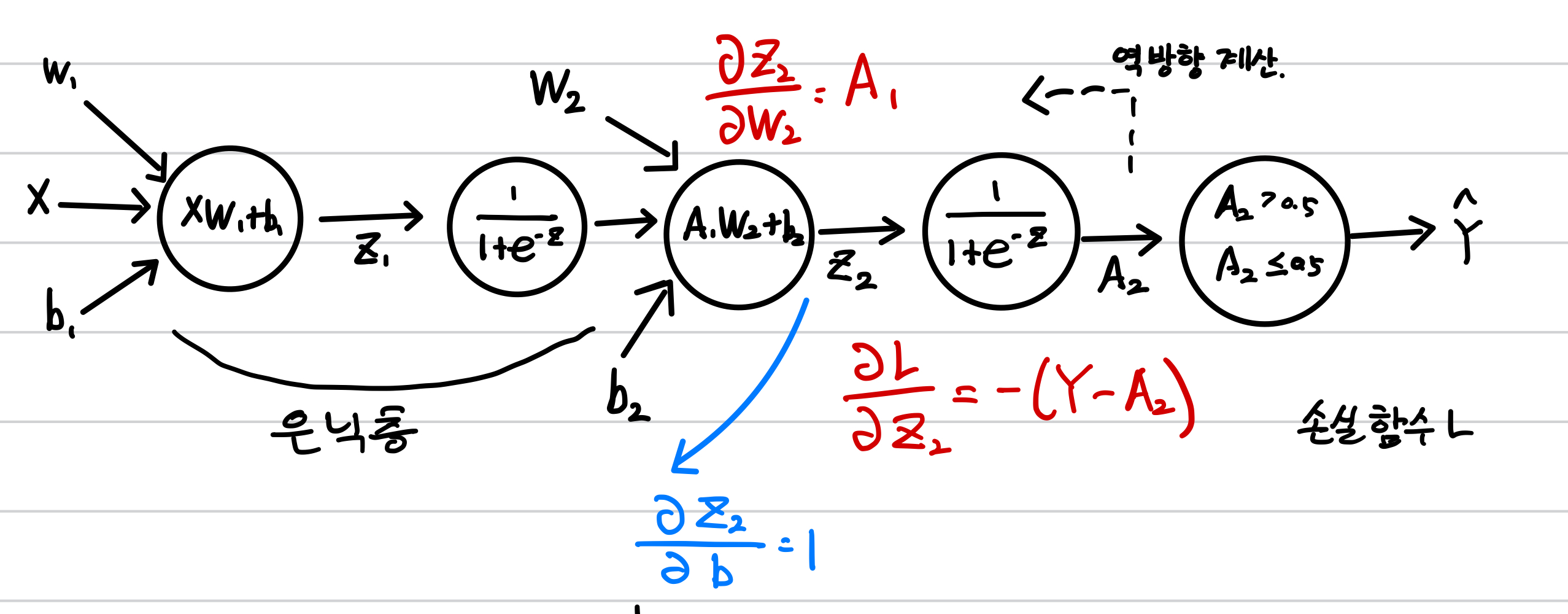 다음은 신경망에 절편에 대한 손실 함수의 미분까지 표시한 것입니다.