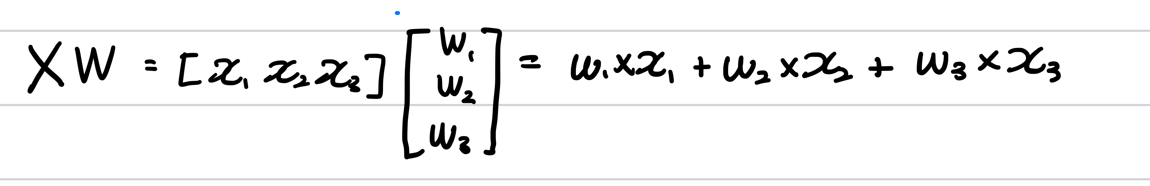만약 훈련데이터가 m개의 샘플 , 3개의 특성을 가지고 있다고 합시다. X,W를 활용하면 ,