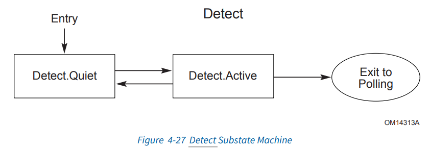 펄스를 보내서 반대편 누군가(링크 파트너)가 있는 것이 확인합니다. 모든 lane에서 detect 되지 않은 경우 다시 Detect.Quiet로 전이되며, 하나 이상의 lane에서 링크파트너가 감지된 경우 Polling 상태로 전이합니다.