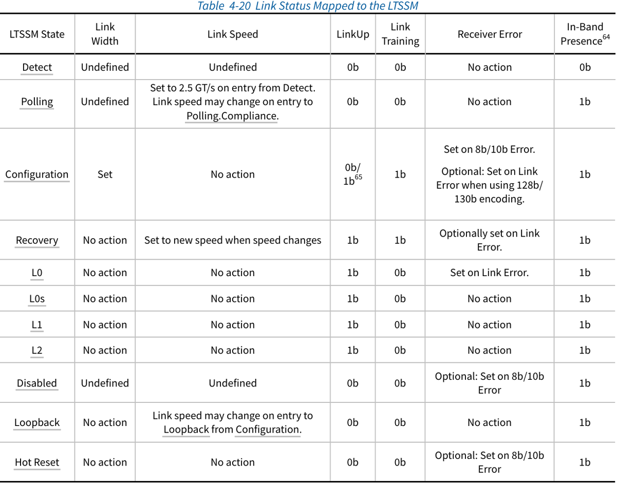 LTSSM은 아주 방대한 내용을 담고 있습니다. 이번 글에서 모든 내용을 담기보다는 각각의 state가 가진 핵심 동작 위주로 설명할 것입니다. 자세한 내용은 PCIe Specification을 참고해주세요.