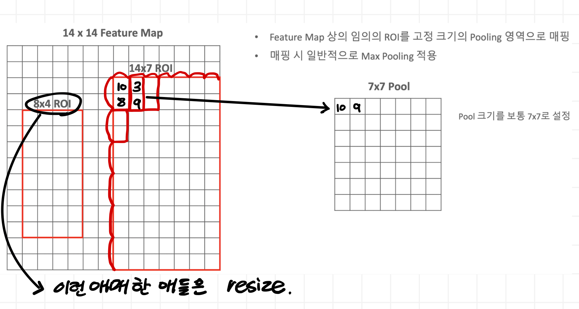 - Feture Map 상의 임의의 크기의 Pooling 영역으로 매핑