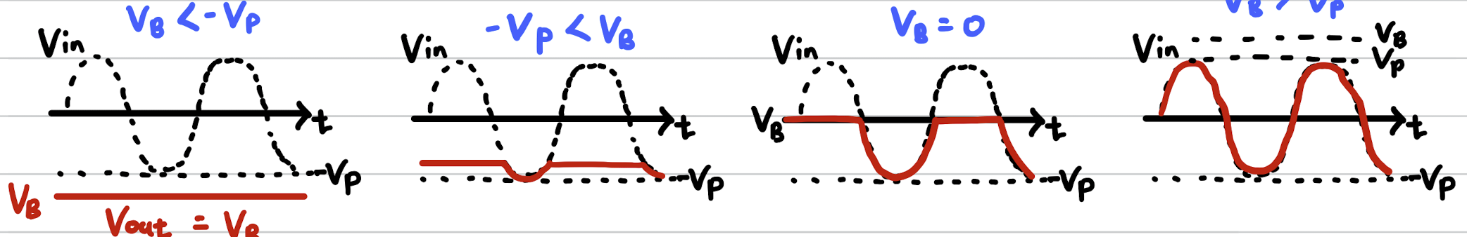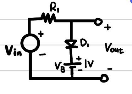 ex) 전지 전압 V(B)가 -무한대 ~ +무한대로 변할때 정현파 입력에 대한 V(out)을 도사하라