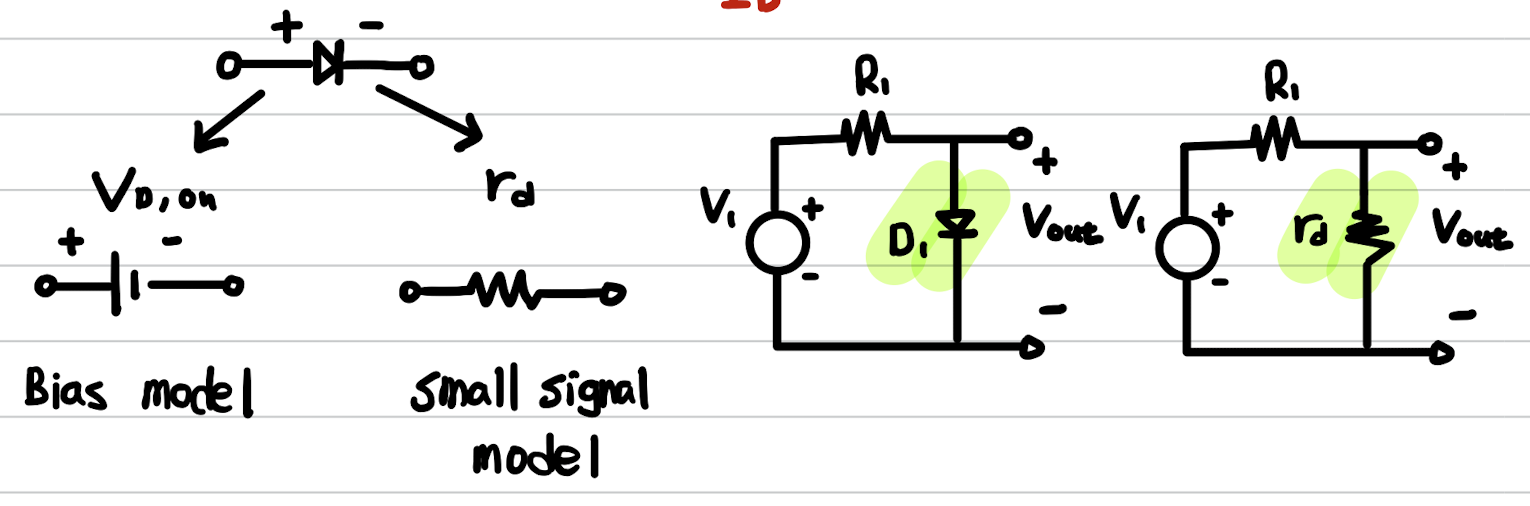 > 지금까지는 다이오드에 임의의 큰 전압과 전류 변화를 허용해 지수 I/V 특성과 같은 일반적인 모델을 필요로했다.(대신호 동장) 하지만 분석이 어렵다는 단점이 있었다.