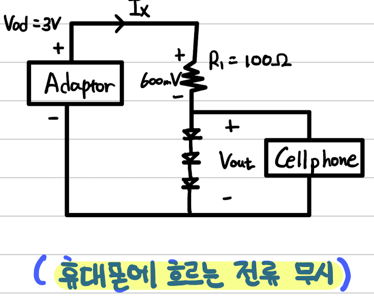 ex ) 만약 cellphone에 0.5mA의 전류가 흐른다면 V(out)은 어떻게 변하는가 ?